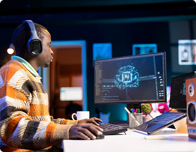 Using AI models, deep learning and advanced algorithms to analyze text descriptions and create high-quality images based on the provided prompts.